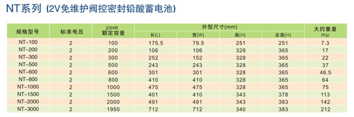 NT系列(2V免維護閥控密封鉛酸蓄電池)