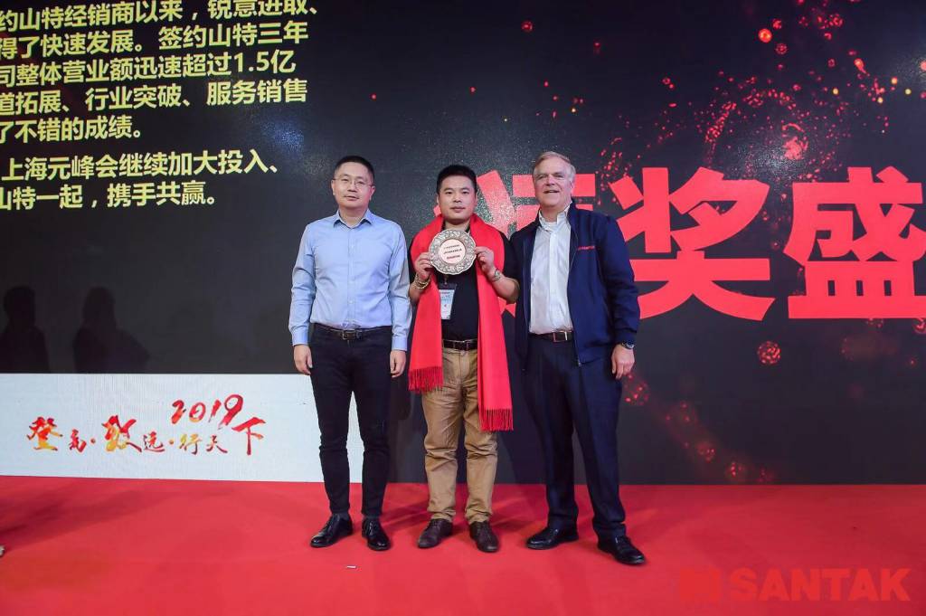 會議期間,還舉辦了一年一度的“山特優(yōu)秀代理商”頒獎典禮,山特對過去一年取得卓越業(yè)績及做出突出貢獻的代理商合作伙伴進行嘉獎。上海元峰憑借自身實力,在眾多合作伙伴中脫穎而出,榮獲山特2018年度市場發(fā)展獎。