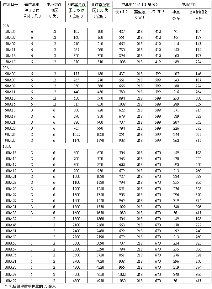 GNB SPRINTER電池一般技術(shù)參數(shù)