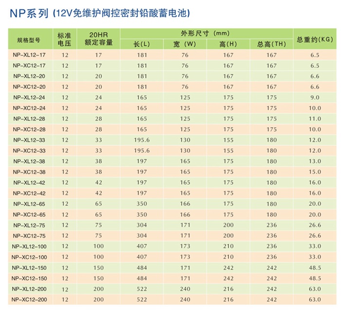 NP系列(12V免維護閥控密封鉛酸蓄電池)