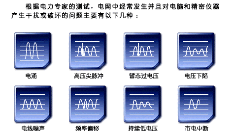 Q.為什么要用UPS? 有一個(gè)常見(jiàn)的錯(cuò)誤概念,認(rèn)為我們使用的市電,除了偶爾發(fā)生的斷電事故,是連續(xù)而且恒定的,其實(shí)不然。市電系統(tǒng)作為公共電網(wǎng),上面連接了成千上萬(wàn)各種各樣的負(fù)載,其中一些較大的感性、容性、開(kāi)關(guān)電源等負(fù)載不僅從電網(wǎng)中獲得電能,還會(huì)反過(guò)來(lái)對(duì)電網(wǎng)本身造成影響,惡化電網(wǎng)或局部電網(wǎng)的供電品質(zhì),造成市電電壓波形畸變或頻率漂移。另外意外的自然和人為事故,如地震、雷擊、輸變電系統(tǒng)斷路或短路,都會(huì)危害電力的正常供應(yīng),從而影響負(fù)載的正常工作。根據(jù)電力專家的測(cè)試,電網(wǎng)中經(jīng)常發(fā)生并且對(duì)電腦和精密儀器產(chǎn)生干擾或破壞的問(wèn)題主要有以下幾種: 1、電涌(power surges):指輸出電壓有效值高于額定值110%,而且持續(xù)時(shí)間達(dá)一個(gè)或數(shù)個(gè)周期。電涌主要是由于在電網(wǎng)上連接的大型電氣設(shè)備關(guān)機(jī)時(shí),電網(wǎng)因突然卸載而產(chǎn)生的高壓。 2、高壓尖脈沖(high voltage spikes):指峰值達(dá)6000v,持續(xù)時(shí)間從萬(wàn)分之一秒至二分之一周期(10ms)的電壓。這主要由于雷擊、電弧放電、靜態(tài)放電或大型電氣設(shè)備的開(kāi)關(guān)操作而產(chǎn)生。 3、暫態(tài)過(guò)電壓(switching transients):指峰值電壓高達(dá) 20000V,但持續(xù)時(shí)間界于百萬(wàn)分之一秒至萬(wàn)分之一秒的脈沖電壓。其主要原因及可能造成的破壞類似于高壓尖脈沖,只是在解決方法上會(huì)有區(qū)別。 4、電壓下陷(power sags):指市電電壓有效值介于額定值的80%至85%之間的低壓狀態(tài),并且持續(xù)時(shí)間達(dá)一個(gè)到數(shù)個(gè)周期。大型設(shè)備開(kāi)機(jī),大型電動(dòng)機(jī)啟動(dòng),或大型電力變壓器接入都可能造成這種問(wèn)題。 5、電線噪聲(electrical line noise):系指射頻干擾(RFI)和電磁干擾(EFI)以及其它各種高頻干擾。馬達(dá)的運(yùn)行、繼電器的動(dòng)作、馬達(dá)控制器的工作、廣播發(fā)射、微波輻射、以及電氣風(fēng)暴等,都會(huì)引起線噪聲干擾。 6、頻率偏移(frequency variation):系指市電頻率的變化超過(guò)3Hz以上。這主要由應(yīng)急發(fā)電機(jī)的不穩(wěn)定運(yùn)行,或由頻率不穩(wěn)定的電源供電所致。 7、持續(xù)低電壓(brownout)指市電電壓有效值低于額定值,并且持續(xù)較長(zhǎng)時(shí)間。其產(chǎn)生原因包括:大型設(shè)備啟動(dòng)和應(yīng)用、主電力線切換、啟動(dòng)大型電動(dòng)機(jī)、線路過(guò)載。 8、市電中斷(power fai1):指市電中斷并且持續(xù)至少兩個(gè)周期到數(shù)小時(shí)的情況。其產(chǎn)生原因有:線路上的斷路器跳閘、市電供應(yīng)中斷、電網(wǎng)故障。 ![]() 對(duì)于電腦來(lái)說(shuō),顯示器及主機(jī)工作都需要正常的電力供應(yīng)。尤其是內(nèi)存,對(duì)電源的要求更高。它是一種依賴電能的存儲(chǔ)設(shè)備,需要不斷地刷新動(dòng)作來(lái)保持存儲(chǔ)內(nèi)容。一旦斷電,所保存的內(nèi)容立即消失。如果非正常斷電,導(dǎo)致內(nèi)存中的信息來(lái)不及保存到硬盤等存儲(chǔ)設(shè)備上,就會(huì)造成信息因完全丟失或變得不完整而失去價(jià)值,從而浪費(fèi)大量的工作精力、時(shí)間、甚至造成巨大的經(jīng)濟(jì)損失。而UNIX這樣的操作系統(tǒng),如果不正常關(guān)機(jī),內(nèi)存中的系統(tǒng)信息沒(méi)有回寫到硬盤上,還可能造成系統(tǒng)崩潰,無(wú)法再次啟動(dòng)。此外,電腦中的硬盤,雖然應(yīng)用的是磁存儲(chǔ)介質(zhì),不會(huì)因斷電而損失信息,但突然的電力故障會(huì)使正在進(jìn)行讀寫工作的硬盤物理磁頭損壞,或者系統(tǒng)文件在維護(hù)文件系統(tǒng)時(shí),造成文件分配表錯(cuò)誤,從而造成整個(gè)硬盤的報(bào)廢。另外,現(xiàn)在的操作系統(tǒng)大都能設(shè)置虛擬內(nèi)存,由于突然的斷電,使系統(tǒng)來(lái)不及取消虛擬內(nèi)存,從而造成硬盤中的“信息碎片”,不僅浪費(fèi)了硬盤存儲(chǔ)空間,還會(huì)導(dǎo)致機(jī)器運(yùn)行緩慢。電腦電源是一種整流電源,過(guò)高的電壓可能會(huì)造成整流器燒毀。而電壓尖脈沖和暫態(tài)過(guò)電壓以及電源雜訊等干擾都可能通過(guò)整流器進(jìn)入主機(jī)板,影響機(jī)器的正常工作,甚至燒毀主機(jī)線路??傊?,電力問(wèn)題是計(jì)算機(jī)工作的重大威脅。但是隨著計(jì)算機(jī)和網(wǎng)絡(luò)應(yīng)用的日益重要和廣泛,安全可靠的電源已是網(wǎng)絡(luò)設(shè)計(jì)和管理人員不得不認(rèn)真面對(duì)的重要問(wèn)題。“需要是社會(huì)發(fā)展的第一推動(dòng)力”,在這種背景下,UPS(不間斷電源)應(yīng)運(yùn)而生,并伴隨電力電子技術(shù)的發(fā)展,不斷推陳出新,在十?dāng)?shù)年間,不僅造就了一個(gè)嶄新的產(chǎn)業(yè),而且隨著時(shí)間的推移更將有蓬勃的發(fā)展和燦爛的前景。 目前我國(guó)的電力狀況? 目前,我國(guó)僅有少數(shù)地區(qū)剛剛解決了電力緊張的問(wèn)題,大部分地區(qū)和大城市還面臨著電力供應(yīng)緊張的迫切問(wèn)題,供電質(zhì)量更是不能得到保證。但即使是在早已實(shí)現(xiàn)電氣化的美